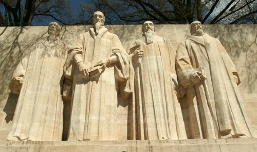 Ah ! Misère ! Les réformateurs français Jean Calvin, Théodore de Bèze et Guillaume Farel doivent se retourner dans leur tombe.