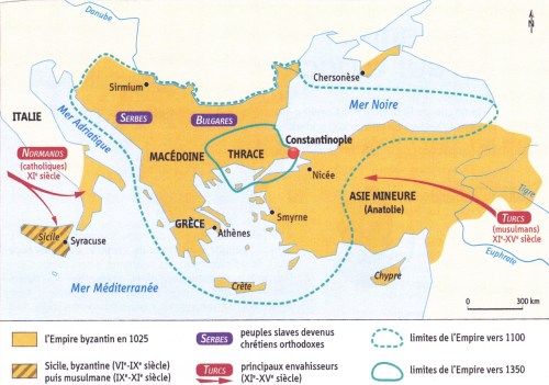 Carte de l’Empire byzantin (1025-1350) où furent produits la plupart des manuscrits néotestamentaires grecs du texte-type dit majoritaire