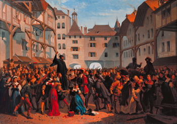 « Les conducteurs spirituels de la cité s’inquiètent des troubles sociaux qui surgissent à Genève, comme ailleurs, dans l’imprimerie notamment. Contre les mesures autoritaires et unilatérales de l’État qui enlève aux ouvriers leurs droits essentiels, les pasteurs proposent une organisation paritaire des métiers. Sur leur initiative, en 1559, le Conseil, d’entente avec les représentants de la profession, prend des mesures pour réglementer l’imprimerie, qui forme la première corporation ou jurande de Genève, dont les ordonnances terminées en 1560 seront maintenues à peu près sans changement pendant deux siècles. Grâce à cette intervention des pasteurs et à la pondération des intéressés dont les règles sont empreintes d’humanité et de juste charité, Genève évite les grèves qui troublent Lyon et Paris à la même époque. Elle en tire d’ailleurs un plus grand profit car ses presses redoublent d’activité en produisant ce que la concurrence française n’est plus à même de fournir. » (Biéler, p. 164.)